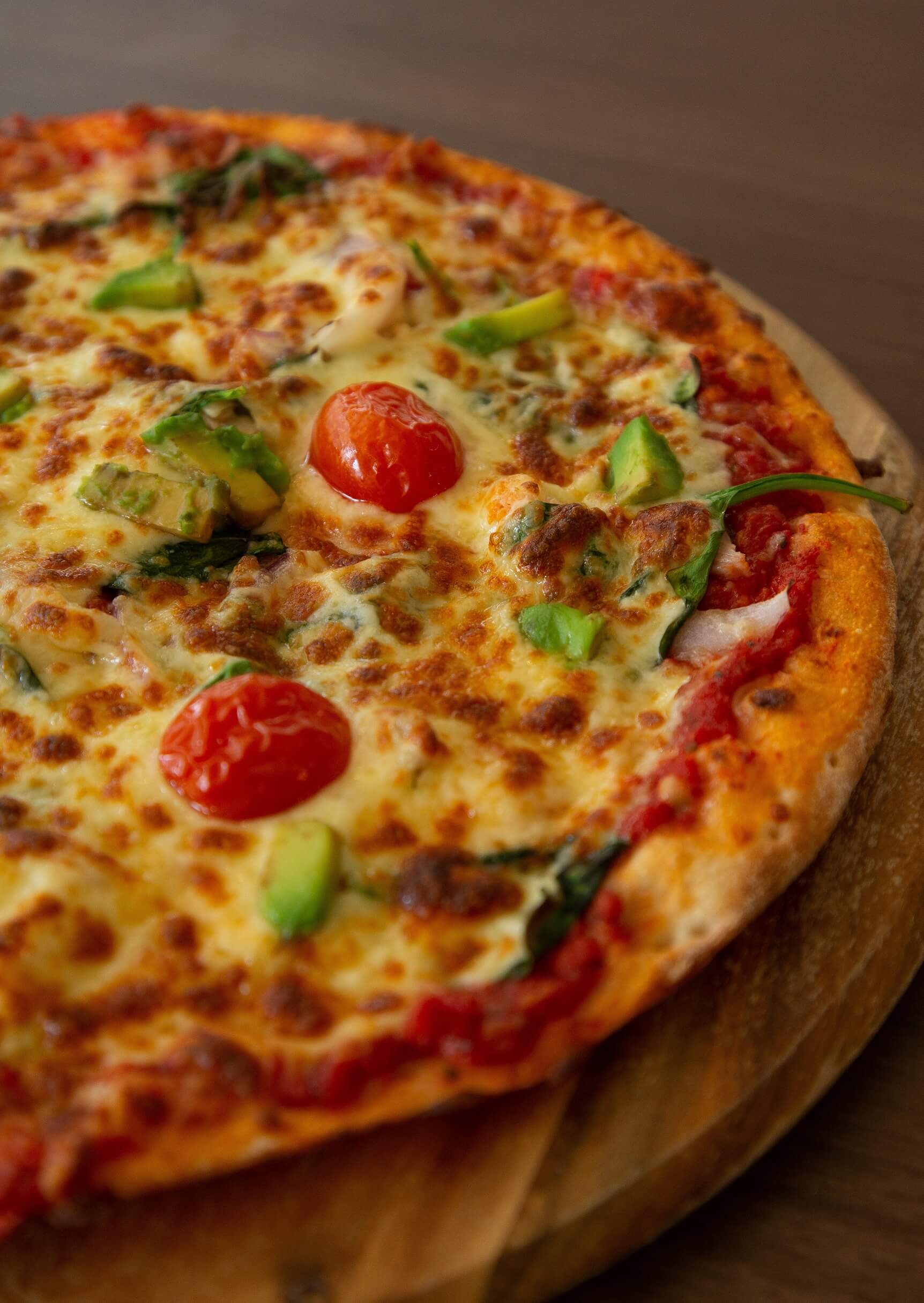 Chicken AvocadoTomato, cheese, spinach, mushroom, spring onion, roasted chicken, avocado, cherry tomato, garlic, oregano and fresh herbs. parmesan cheese×