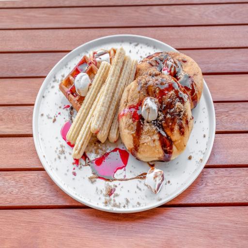 Churro Pack$1112 pcs – Mini churros loaded with strawberry, Nutella, banana, coconut flake, almond and icing sugarBelgium Waffle$162 pcs – Waffle topped with strawberry, Nutella, banana, coconut flake, almond and vanilla ice creamFontana Plater$19.90Serve with royal waffles, churro, Choco Donuts topped with strawberry, Nutella, banana, coconut flake, and almond
