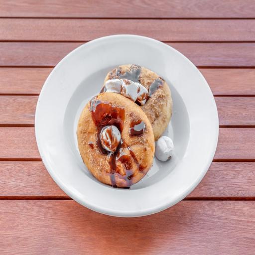 Donut Pack$7.502pcs – Topped with Nutella and mix nutsNutella Pizza$14Topped strawberry, Nutella, coconut flake, almond and icing sugarStrawberry Calzone$12Filling with strawberry, hazelnut Chocolate dust with icing and NutellaCinnamon Donut Fries$11Coated with NutellaIce Creams