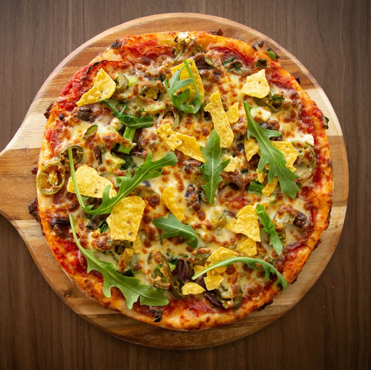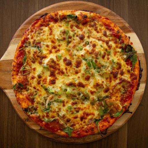 Tomato, Cheese, salami, sweet corn, roasted pepper, spring onion, Spanish onion, olives, avocado, jalapenos, feta, garlic and chilli flakesChoose one